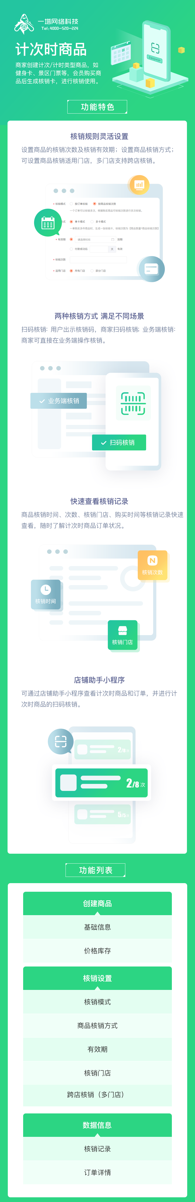 商家创建计次/计时类型商品,如健身卡、景区门票等,会员购买商品后生成核销卡,进行核销使用。