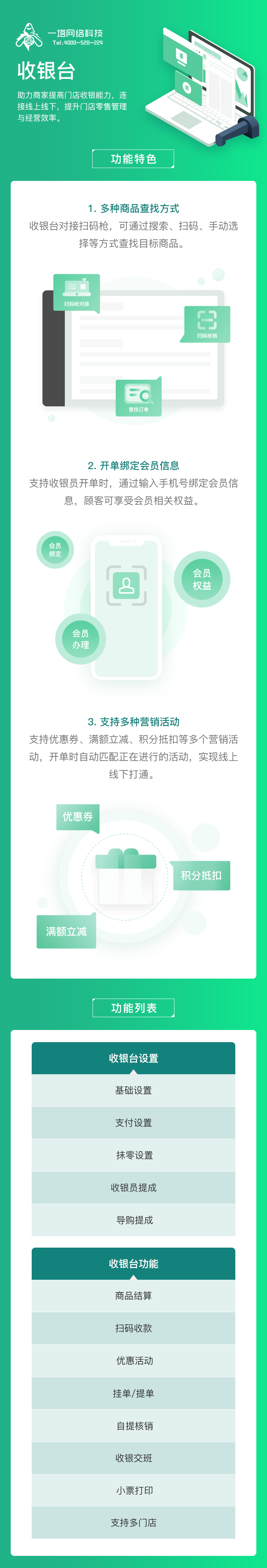 助力商家提高门店收银能力,连接线上线下,提升门店零售管理与经营效率。