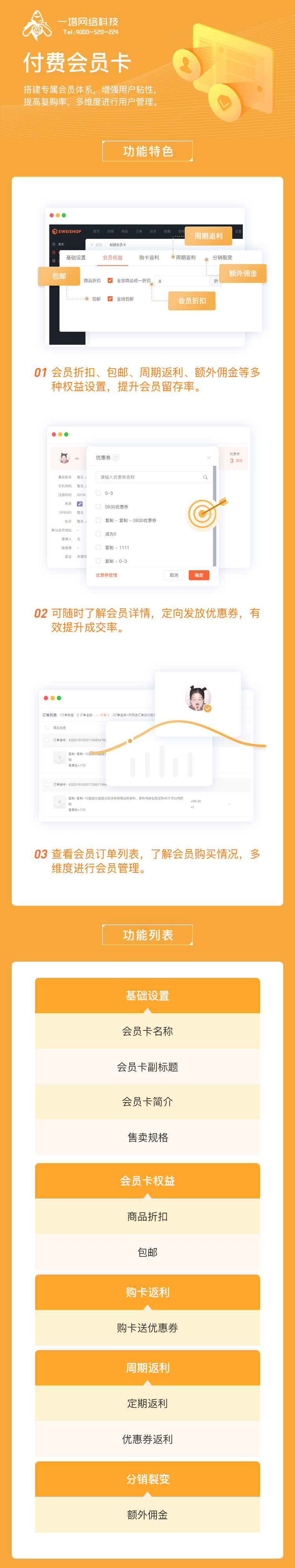 搭建专属会员体系,增强用户粘性,提高复购率,多维度进行用户管理。