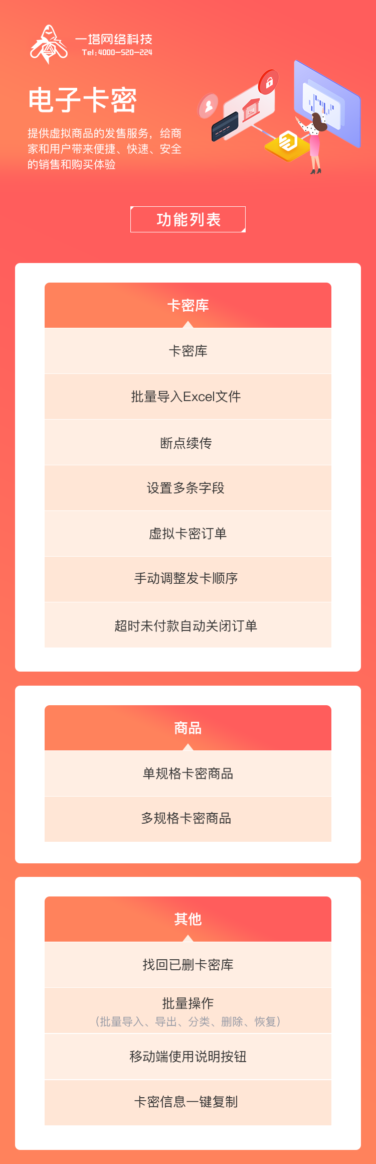 提供虚拟商品的发售服务,给商家和用户带来便捷、快速、安全的销售和购买体验