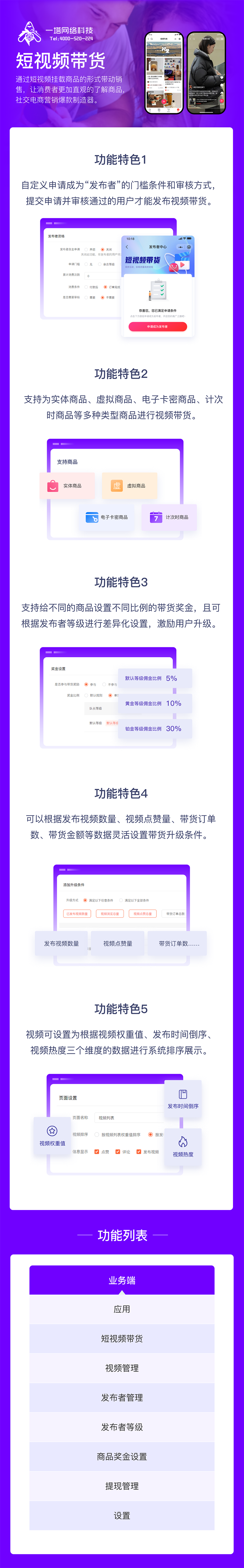 通过短视频挂载商品的形式带动销售,让消费者更加直观的了解商品,社交电商营销爆款制造器。