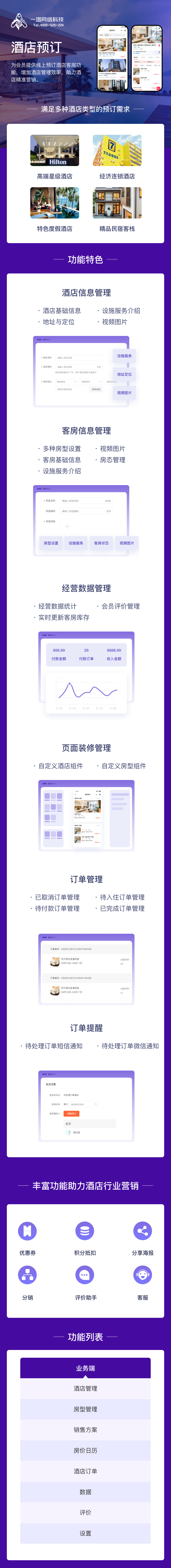 为会员提供线上预订酒店客房功能,增加酒店管理效率,助力酒店精准营销。